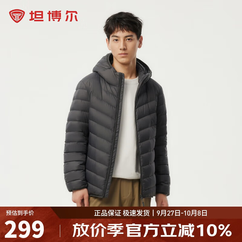 自营坦博尔羽绒服春款保暖百搭通勤百搭男款轻薄连帽外套TF246209陨石灰180