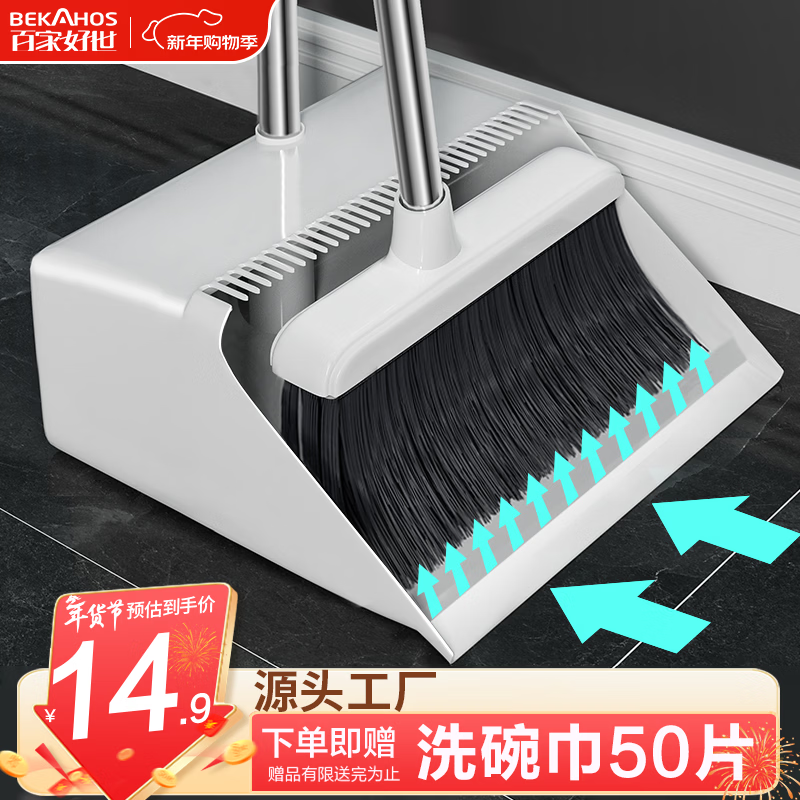 自营百家好世 扫把簸箕套装组合撮箕家用套装软毛梳齿笤帚不粘头发扫地刮水
