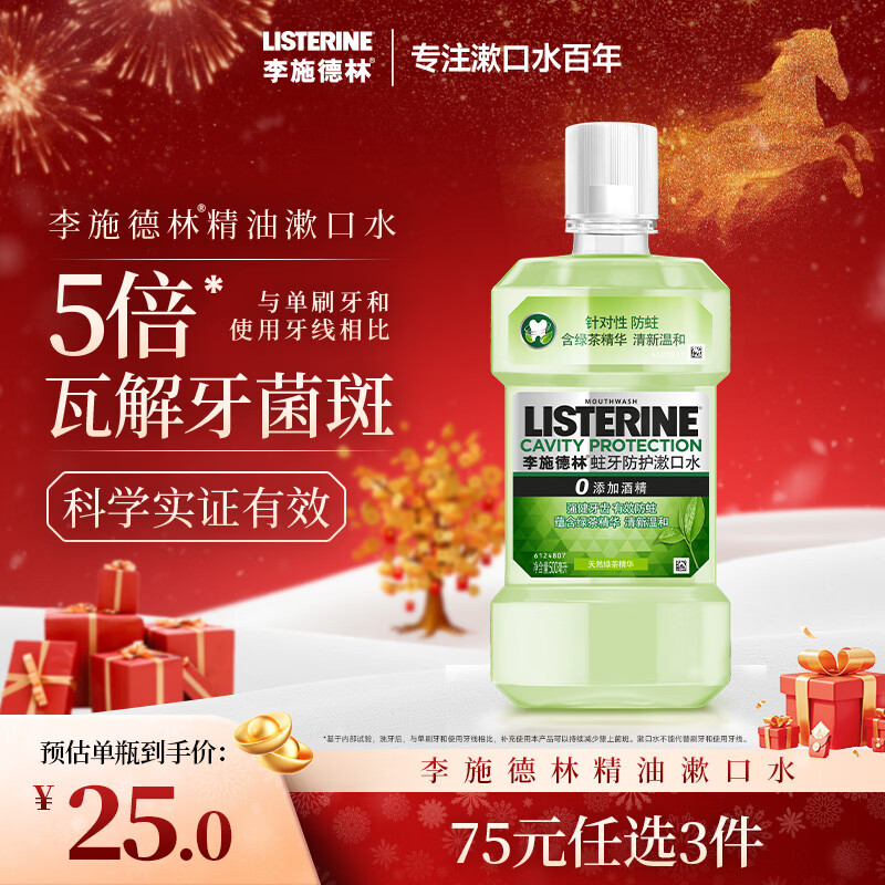 自营李施德林(Listerine) 漱口水 绿茶精华防蛀防护清新口气 500mL