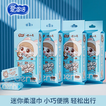 旗舰店爱恩倍迷你婴幼儿童学生湿巾纸小包便携随身擦手口屁宝宝湿厕纸巾 256片 4提