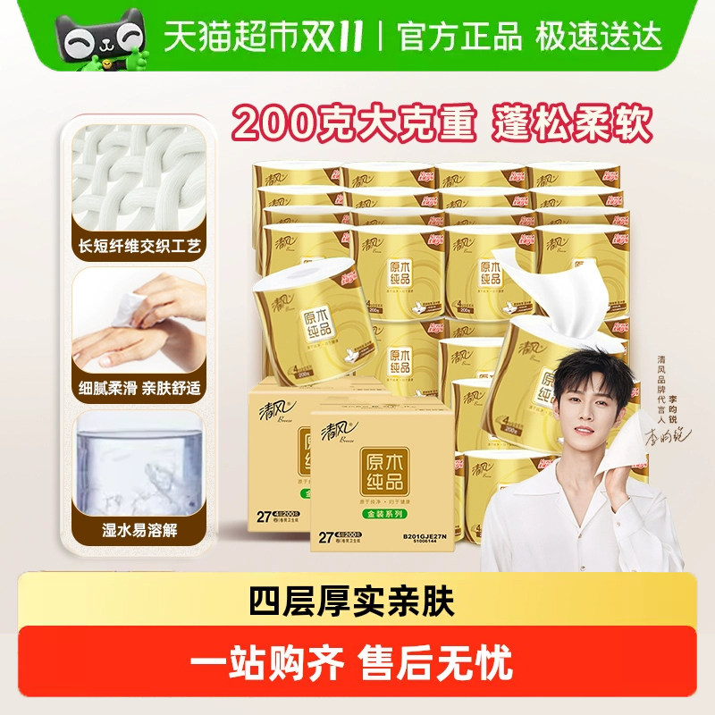 【李昀锐同款】下拉享优惠清风有芯卷纸金装4层200克54卷卫生纸