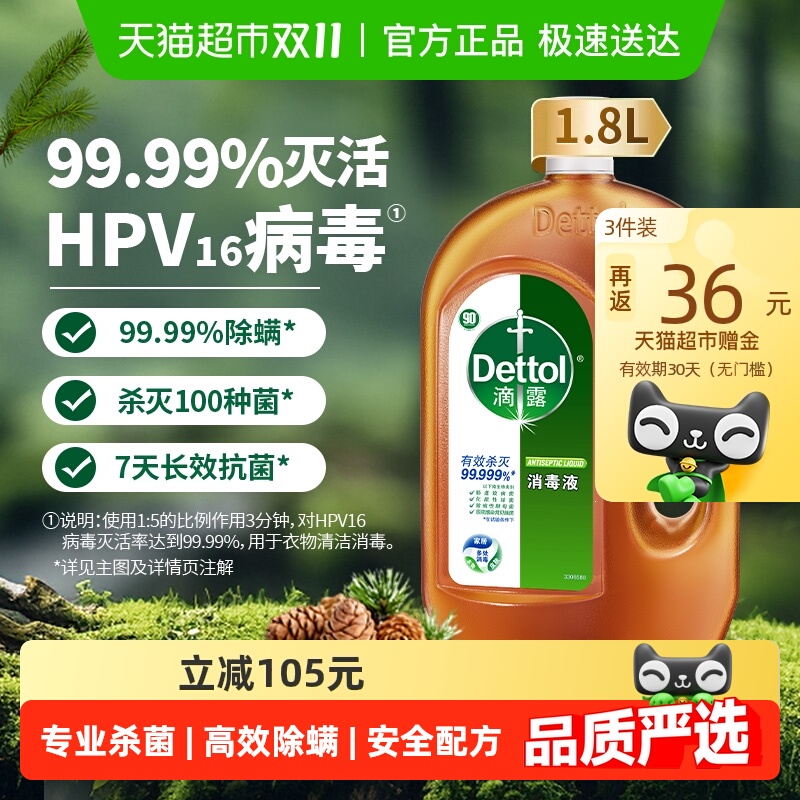 Dettol/滴露家居衣物皮肤消毒液-杀菌消毒除螨/99.99%灭活hpv16*