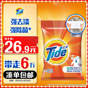自营汰渍全效炫白洗衣粉6斤大袋批发非皂粉持久留香深层去污家庭装