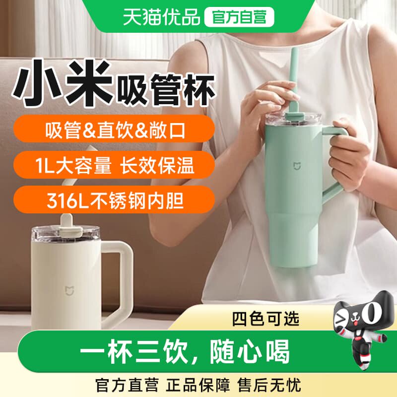 旗舰店小米米家巨无霸吸管杯保温杯大容量车载316L不锈钢直饮冰霸杯