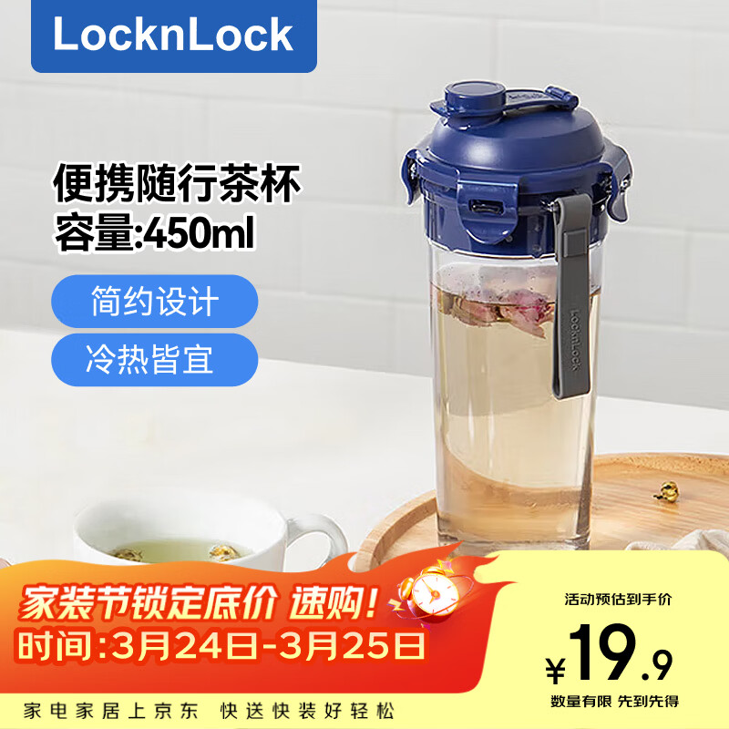 自营乐扣乐扣(LOCK&LOCK)大容量运动塑料水杯随手茶杯蓝色ABF931MBL_450ML