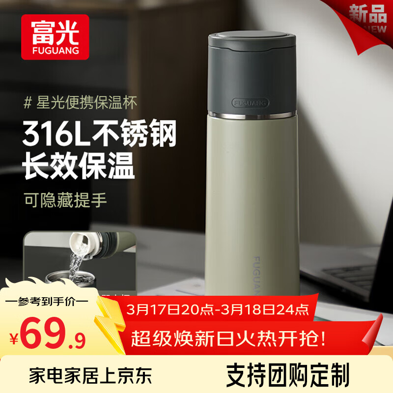 旗舰店富光保温杯316不锈钢大容量水杯子学生男女茶杯高颜值38女神生日礼物 丹青绿500ml