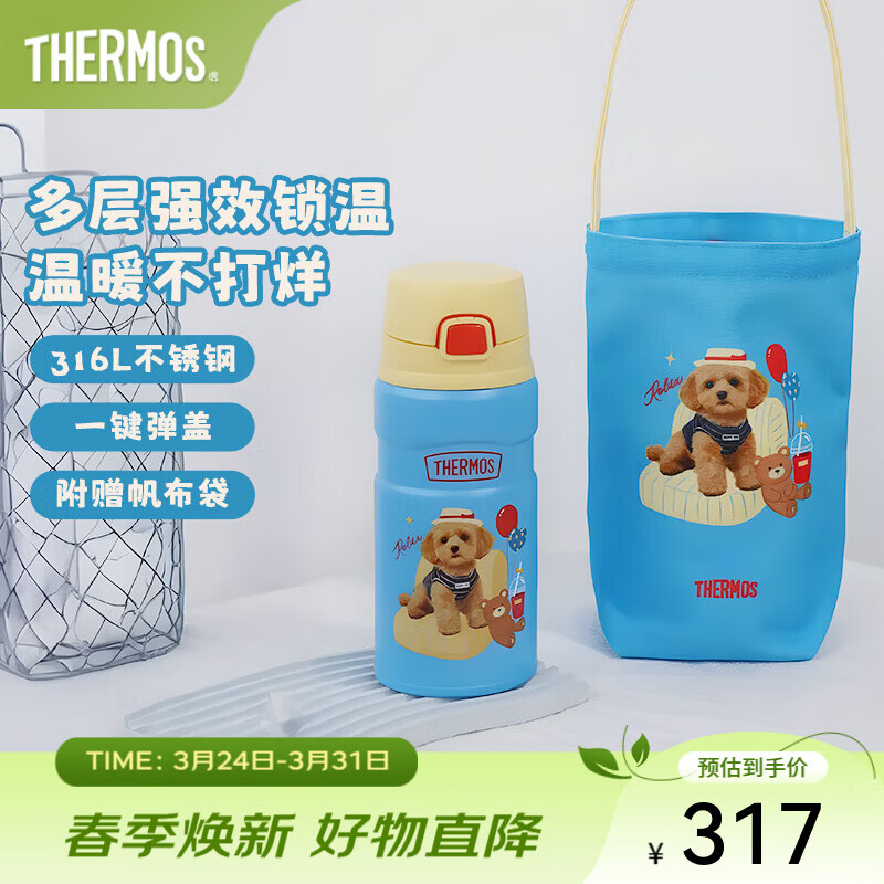 旗舰店膳魔师保温杯大容量高颜值女士儿童水杯便携可爱杯子联名款TSK2 萌宠-糖果蓝赠杯包 500ml