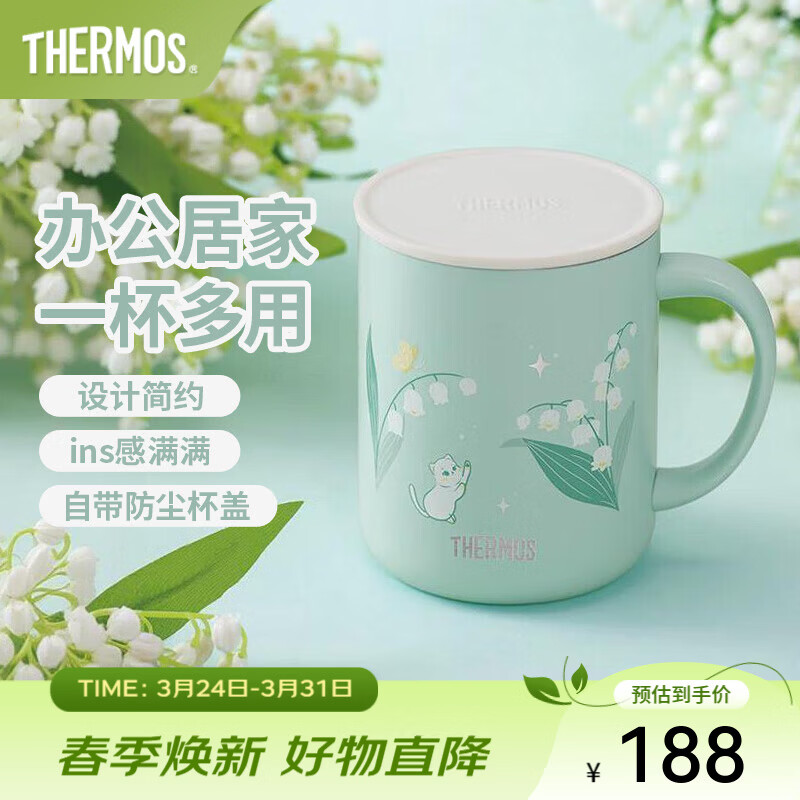 旗舰店膳魔师(THERMOS)不锈钢时尚简约大咖杯带盖茶饮牛奶咖啡杯办公水杯把手杯TCDG-451 【304不锈钢内胆】铃兰花 440ml