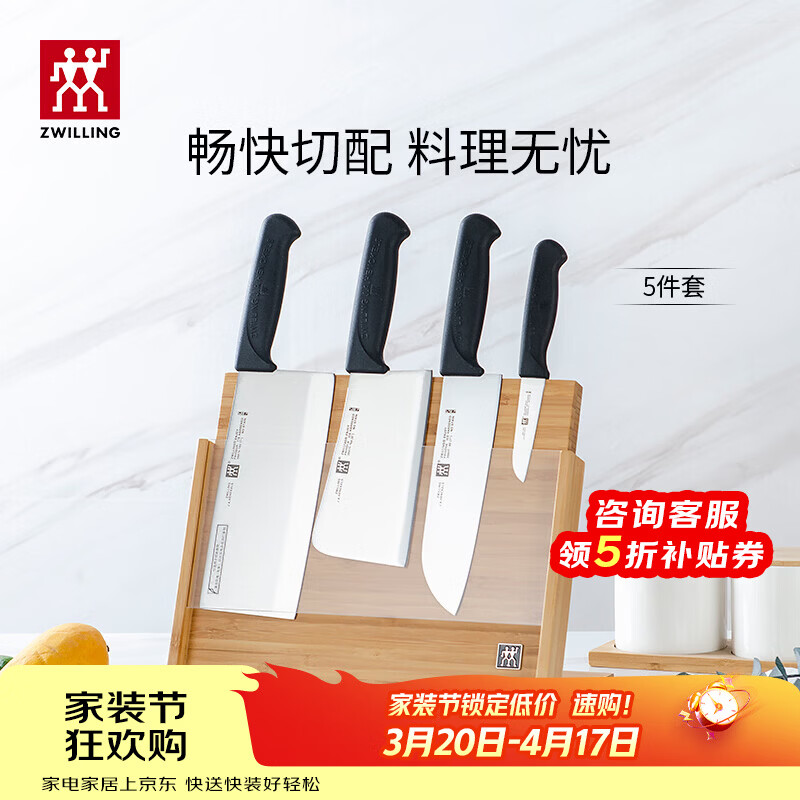 旗舰店双立人(ZWILLING)刀具套装家用菜刀切菜刀水果刀切肉刀剪刀刀架厨房刀厨具全套 enjoy刀具5件套-磁吸刀架