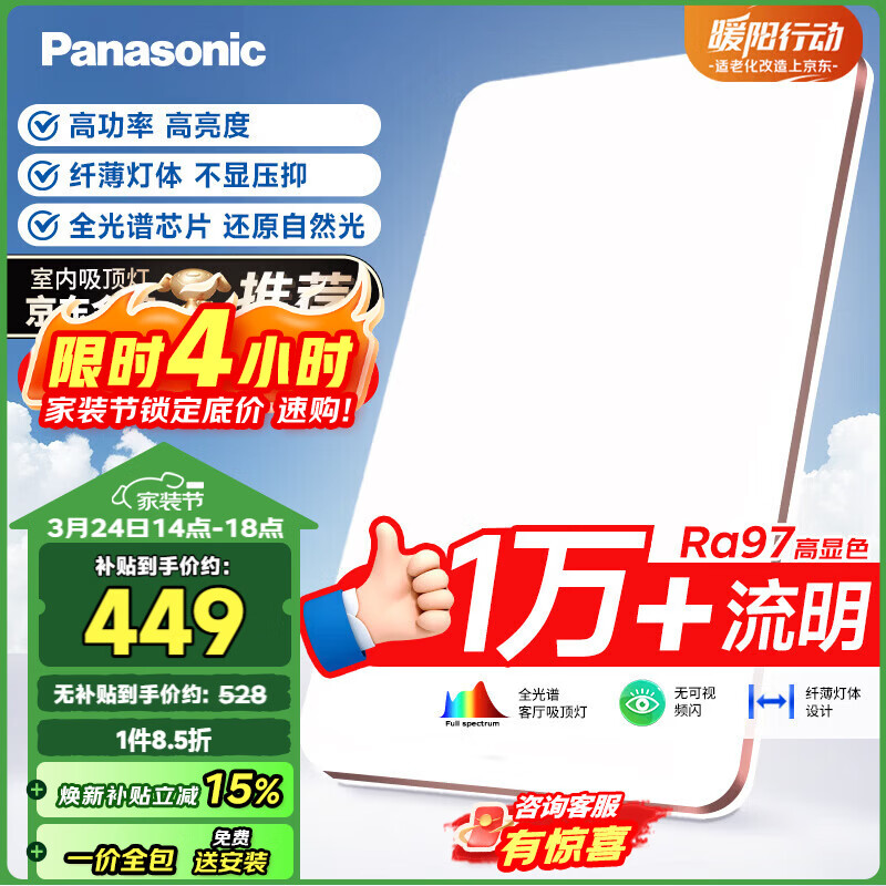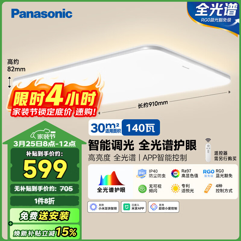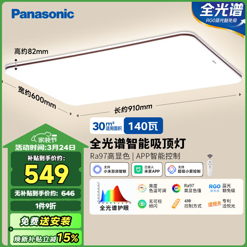 自营松下(Panasonic)吸顶灯全光谱护眼140W三档调色客厅大灯【补贴】【包安装】