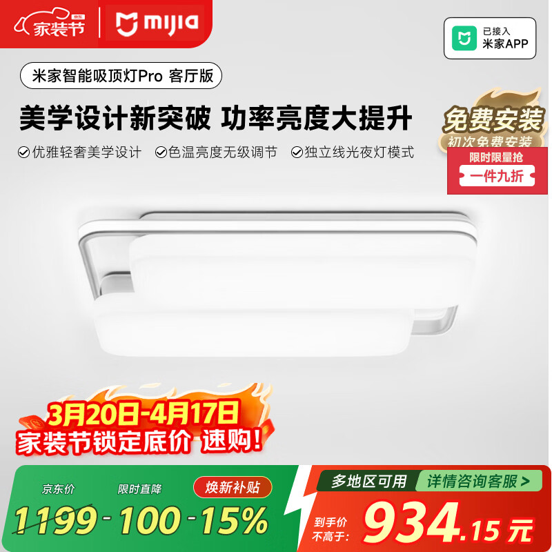 自营米家小米智能吸顶灯PRO客厅版客厅灯主灯灯具简约现代【包安装】