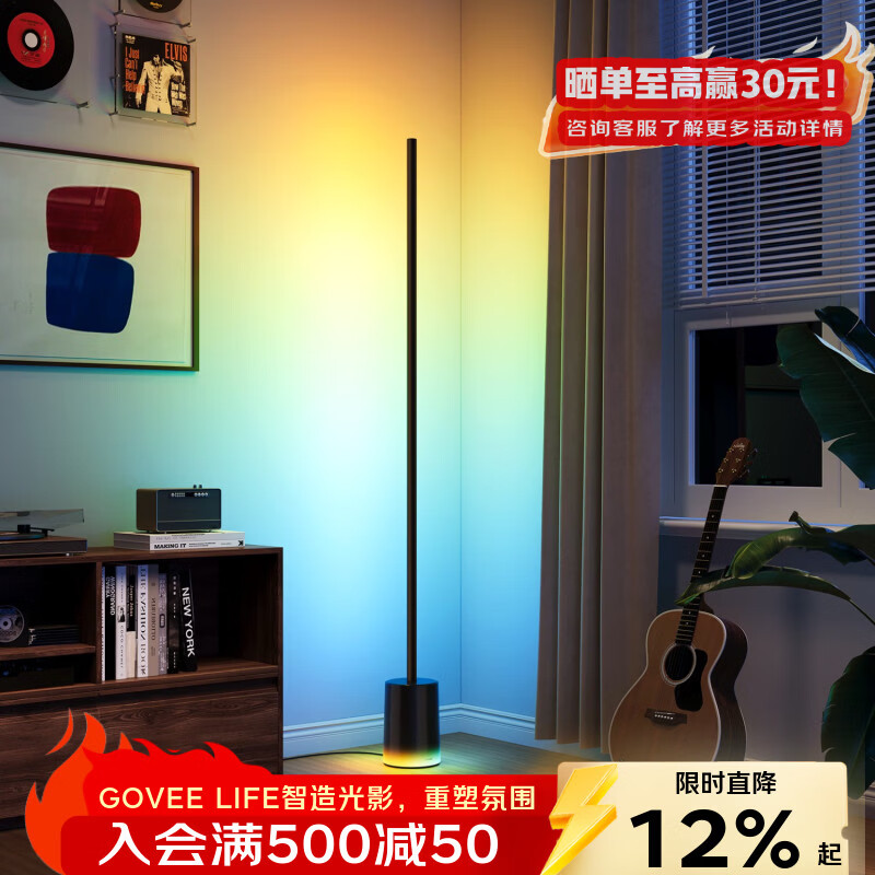 旗舰店GOVEE LIFE 幻彩落地灯客厅沙发旁高级感氛围灯 谷纬智能现代卧室极简装饰灯 幻彩落地灯-专业光影氛围师【补贴版】