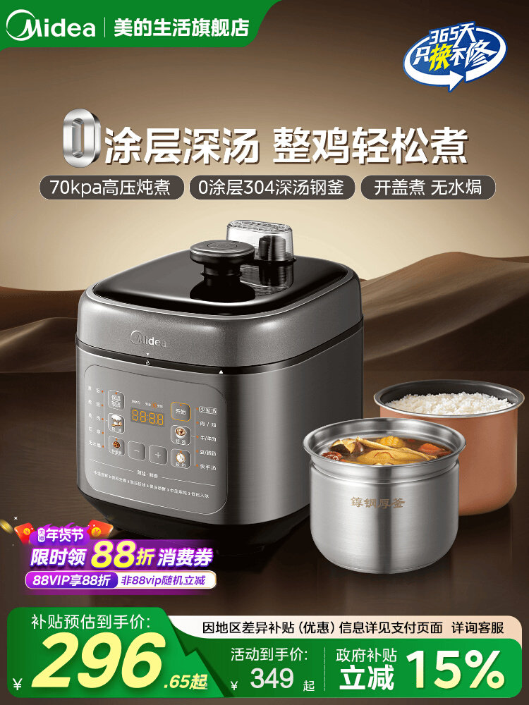 旗舰店美的0涂层深汤电压力锅家用电高压锅政府换新补贴电饭煲电压锅