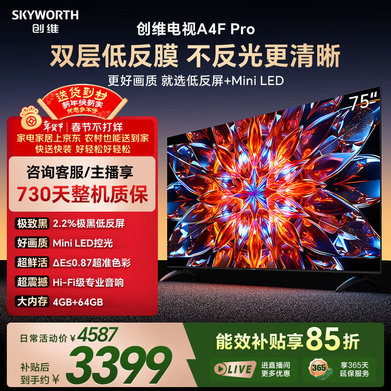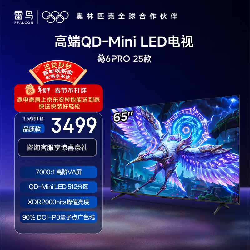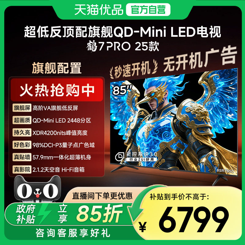 旗舰店雷鸟鹤7 PRO 25款85英寸QD-MiniLED超低反智能电视机补贴85R795C