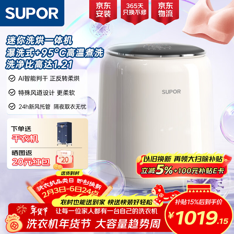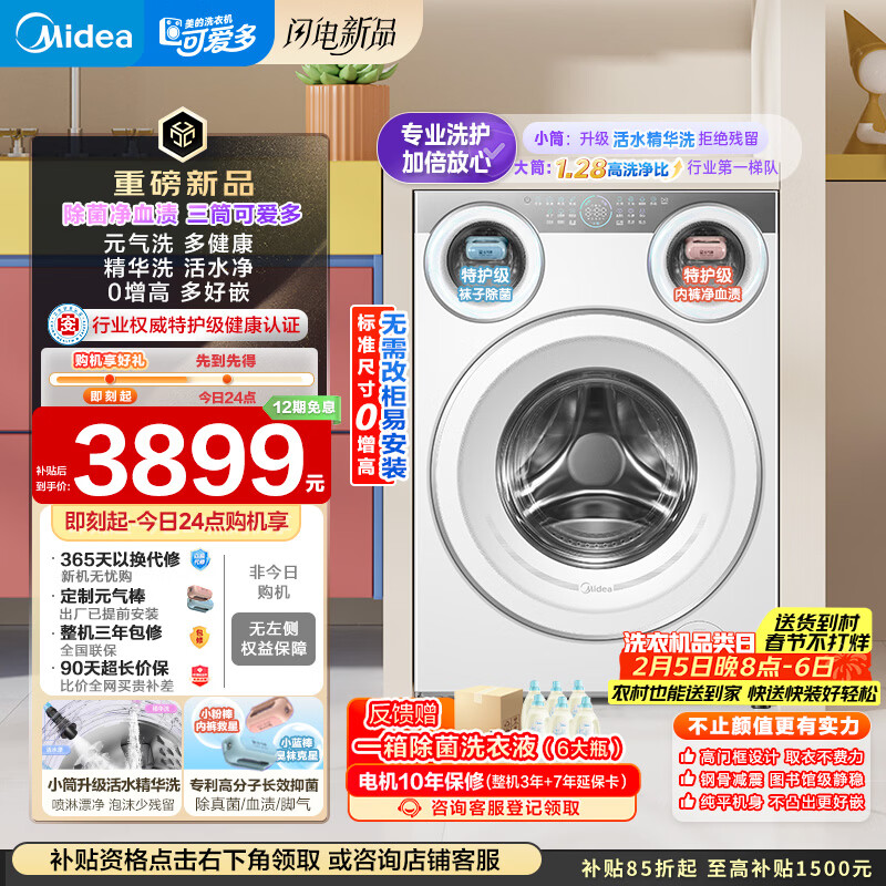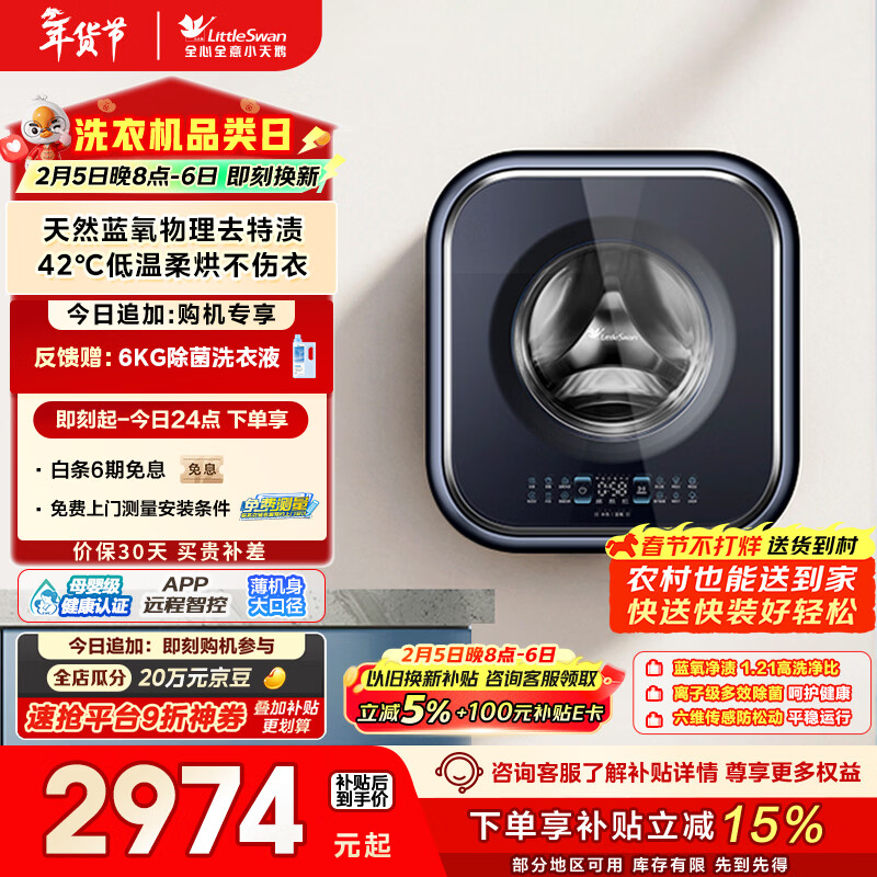 自营小天鹅(LittleSwan)小海绵2.0高奢版 内衣洗衣机小型全自动 3KG壁挂洗烘一体 婴儿 迷你 TD30MS90 以旧换新 国家补贴