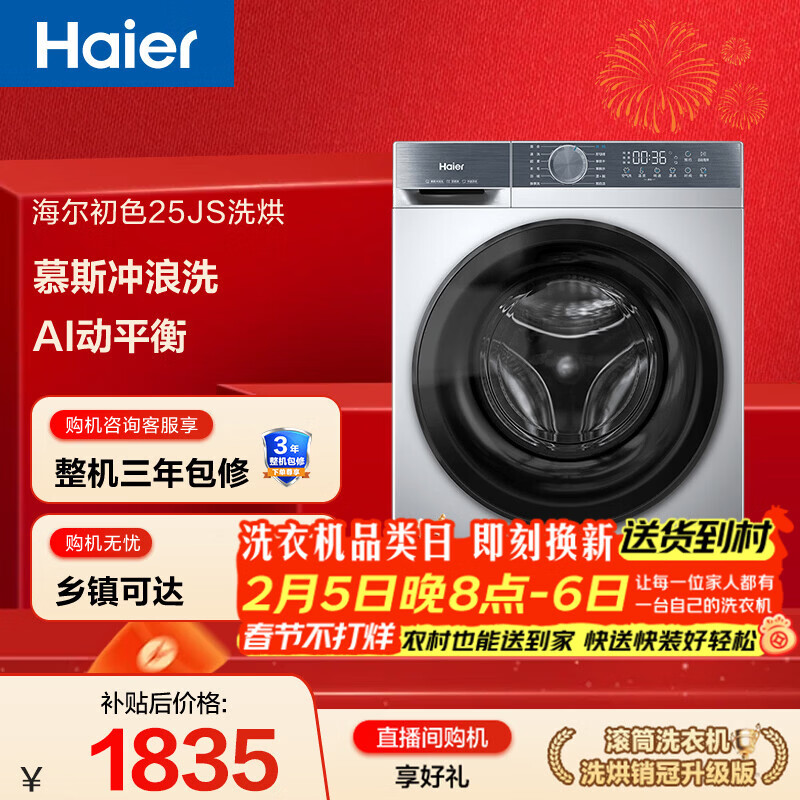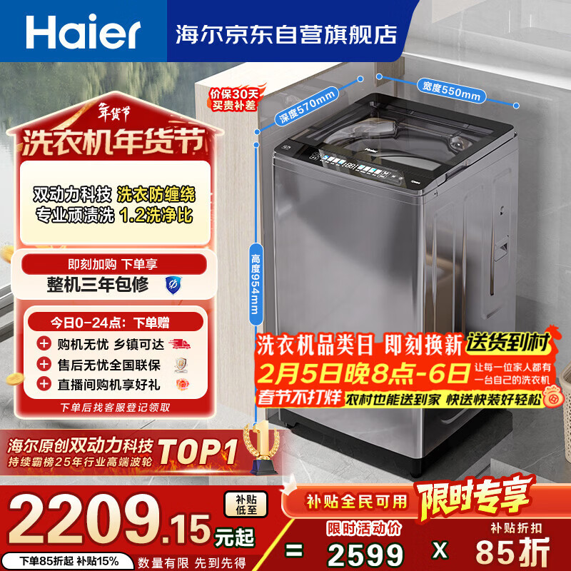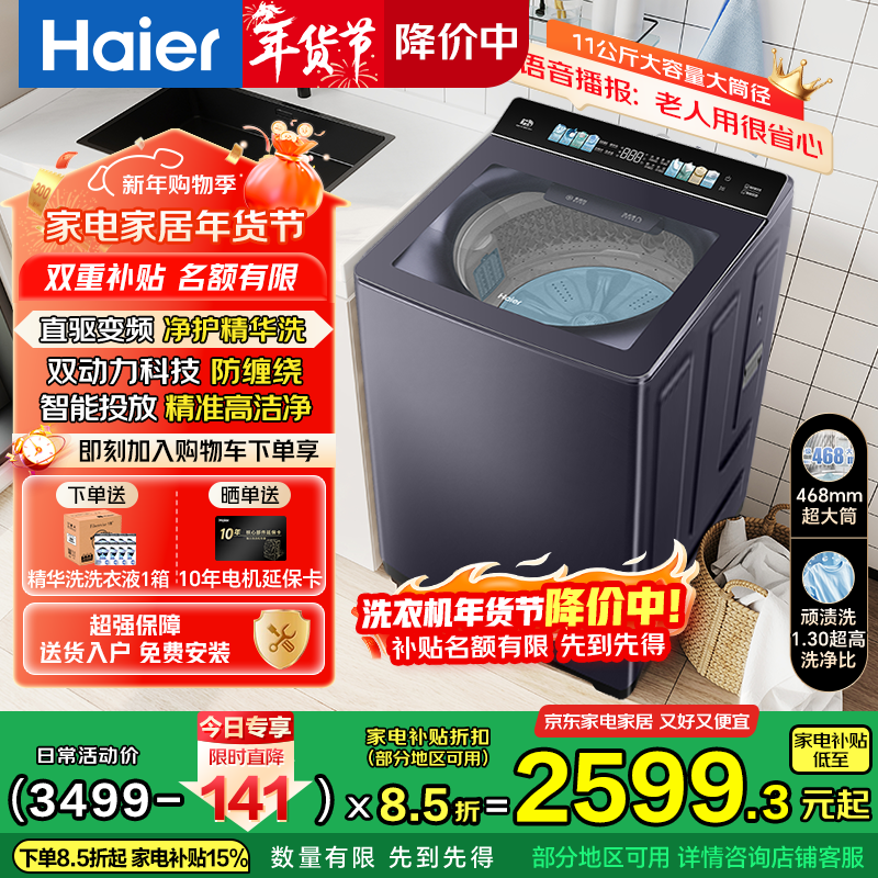 旗舰店海尔(Haier)波轮洗衣机全自动懒人家用 12公斤大容量 直驱变频 一级能效 家电换新补贴 BZ20D1