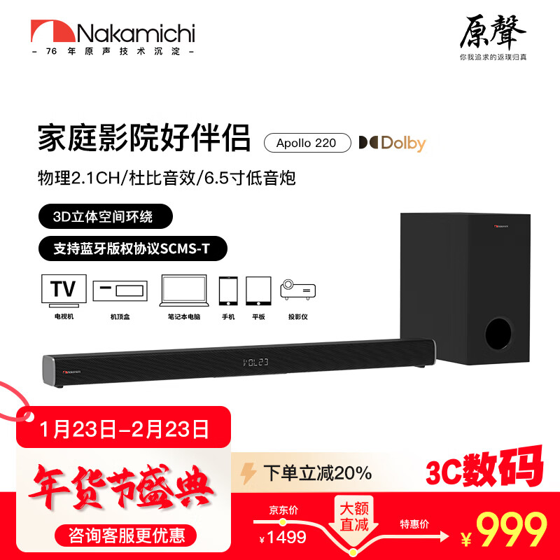 旗舰店Nakamichi中道APOLLO220回音壁2.1杜比立体声电脑电视音响投影仪