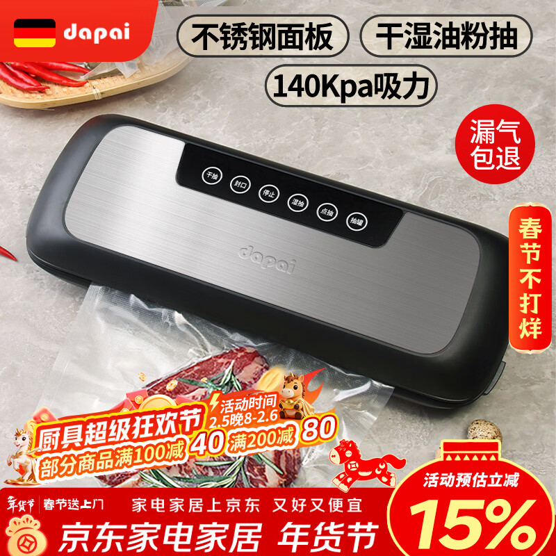 自营达派(dapai)真空封口机干湿两抽双泵吸力全自动带真空袋不锈钢面板切割刀保鲜密封机