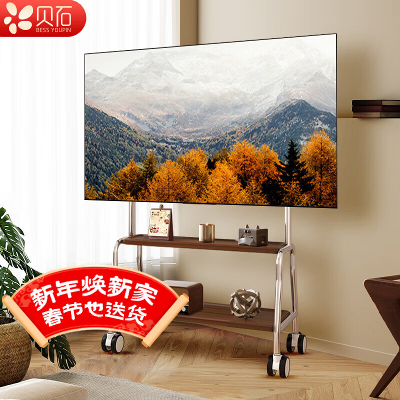 旗舰店贝石 移动电视支架艺术电视支架落地电视推车适用于索尼海信华为创维等电视通用电视挂架子 【32-75英寸】精选不锈钢/双层置物架