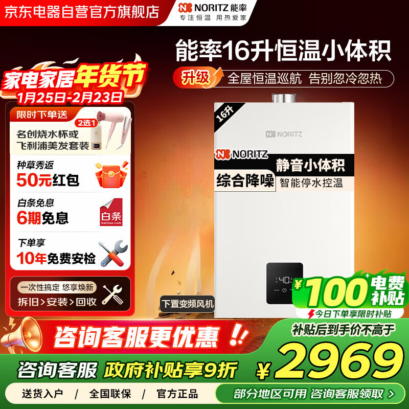 自营能率(NORITZ)16升燃气热水器全屋恒温巡航 多点用水 节能防冻 天然气家用 JSQ31-EP2