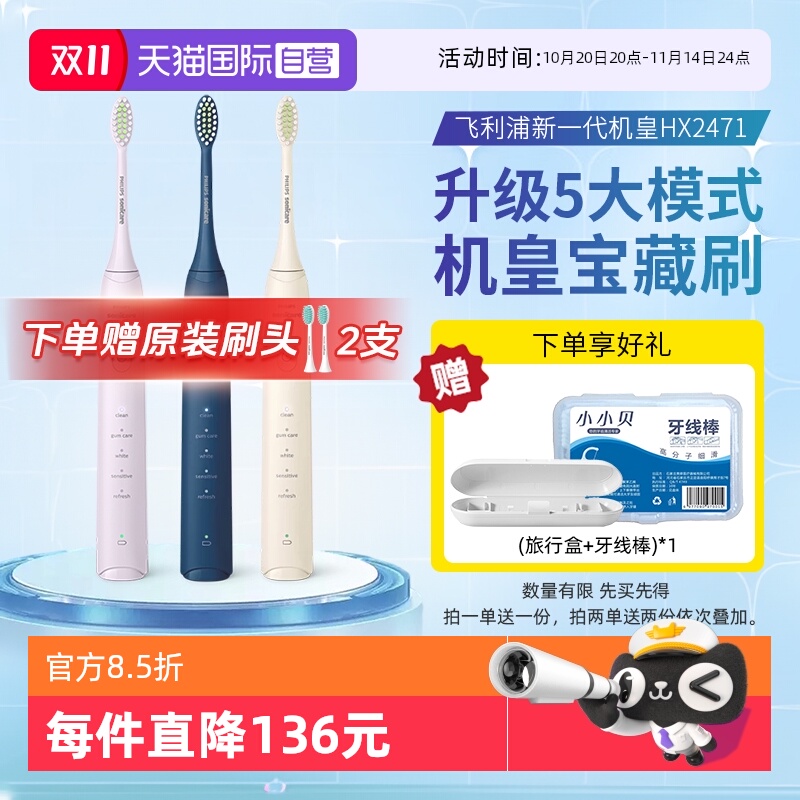 自营【自营】飞利浦电动牙刷HX2471男女情侣款洁净智能宝藏刷