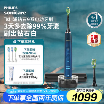 自营飞利浦(PHILIPS)【肖战推荐】电动牙刷钻石9系 情侣送男生/女友 生日礼物 去除99.9%牙渍 HX9911/62蓝色