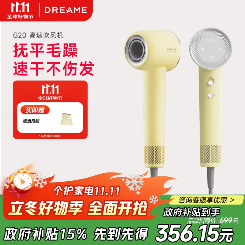 自营追觅韶光G20家用电吹风恒温速干吹风筒负离子高速护发无叶吹风机送礼礼物 蜂蜜黄AHD12B