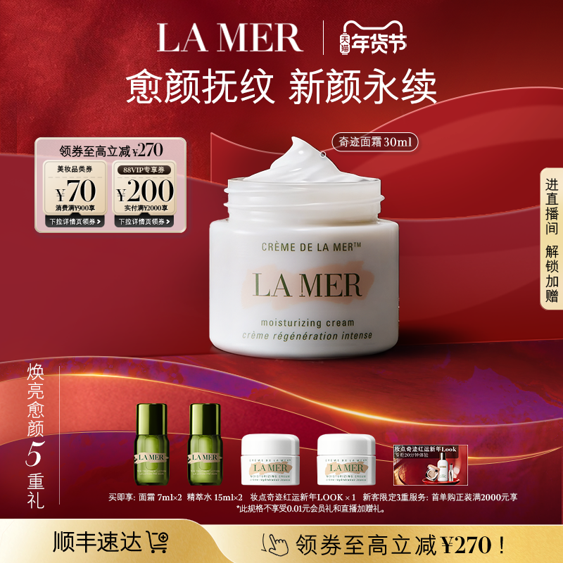 自营海蓝之谜(LA MER)奇迹晚霜30ml抗老紧致修护面霜护肤品化妆品礼盒生日情人节礼物女