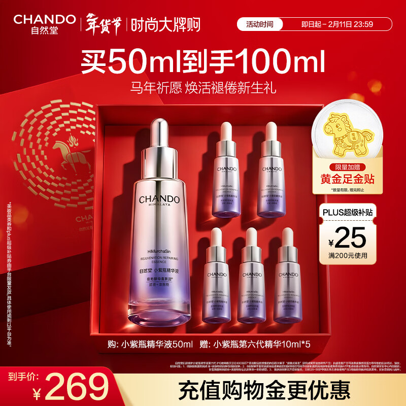 自营自然堂【龚俊同款】小紫瓶精华第六代50ml+10ml*5抗疲老新年礼物