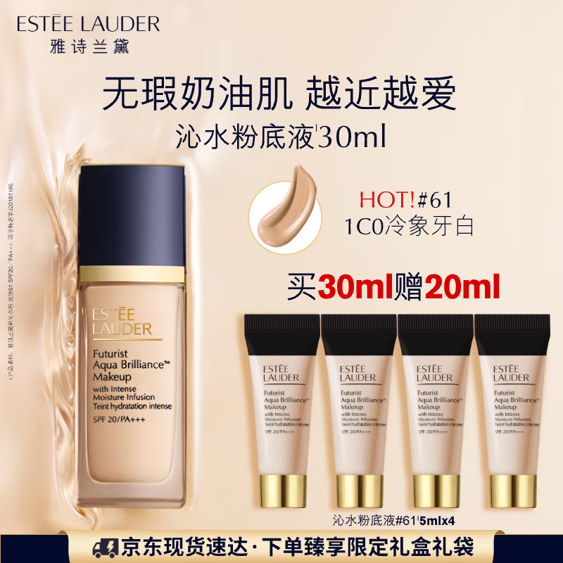 自营雅诗兰黛沁水粉底液61#冷象牙白(1C0)30ml干皮持久遮瑕化妆品礼盒七夕礼物