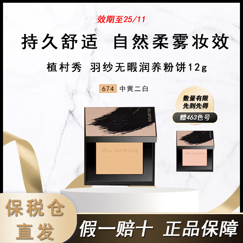 植村秀(shu uemura)羽纱无暇润养粉饼12g 小方饼遮瑕控油化妆定妆不卡粉【临期特惠】 #674【赠粉盒 +#463】效期25/11