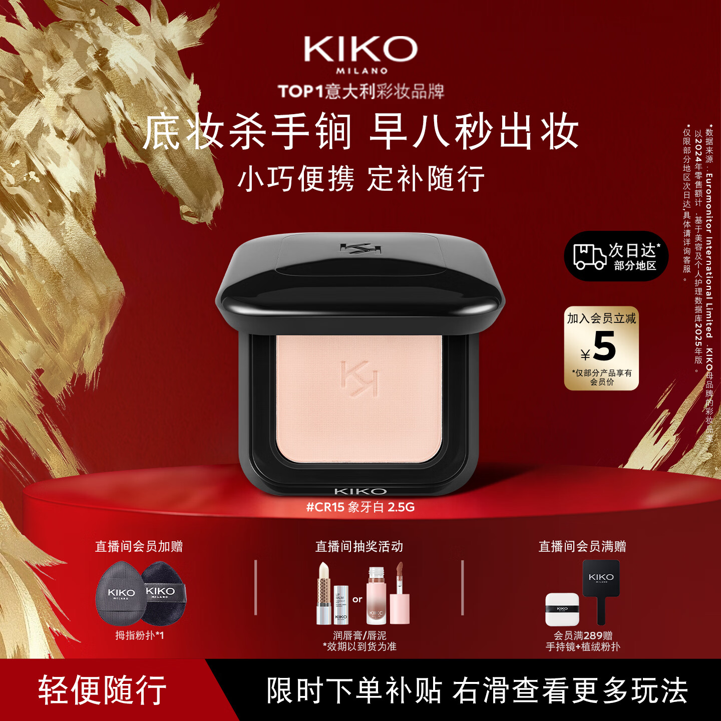 自营KIKOMINI防晒粉饼CR15定妆补妆底妆遮瑕不脱妆2.5g便携装