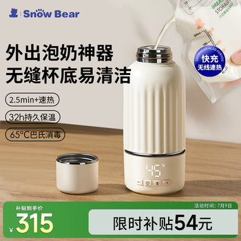 自营小白熊SnowBear无线便携恒温杯婴儿水壶保温儿童外出泡奶电热杯带快充500mL 5076