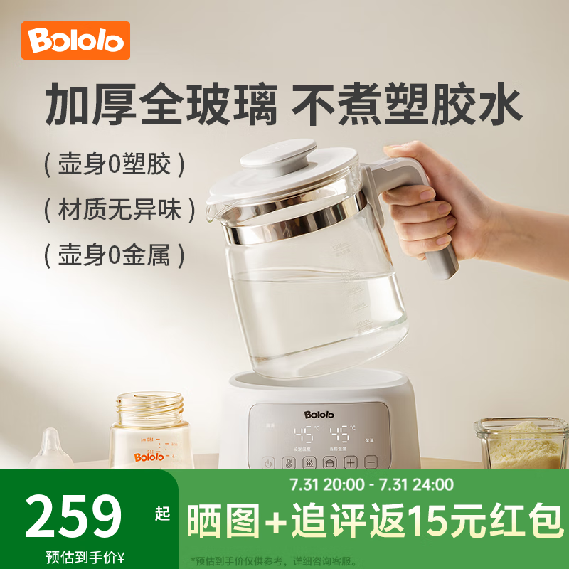旗舰店波咯咯全玻璃恒温水壶婴儿冲泡奶恒温壶家用多功能泡奶机烧水壶 【全玻璃】精准恒温/煮沸除氯 1.3L