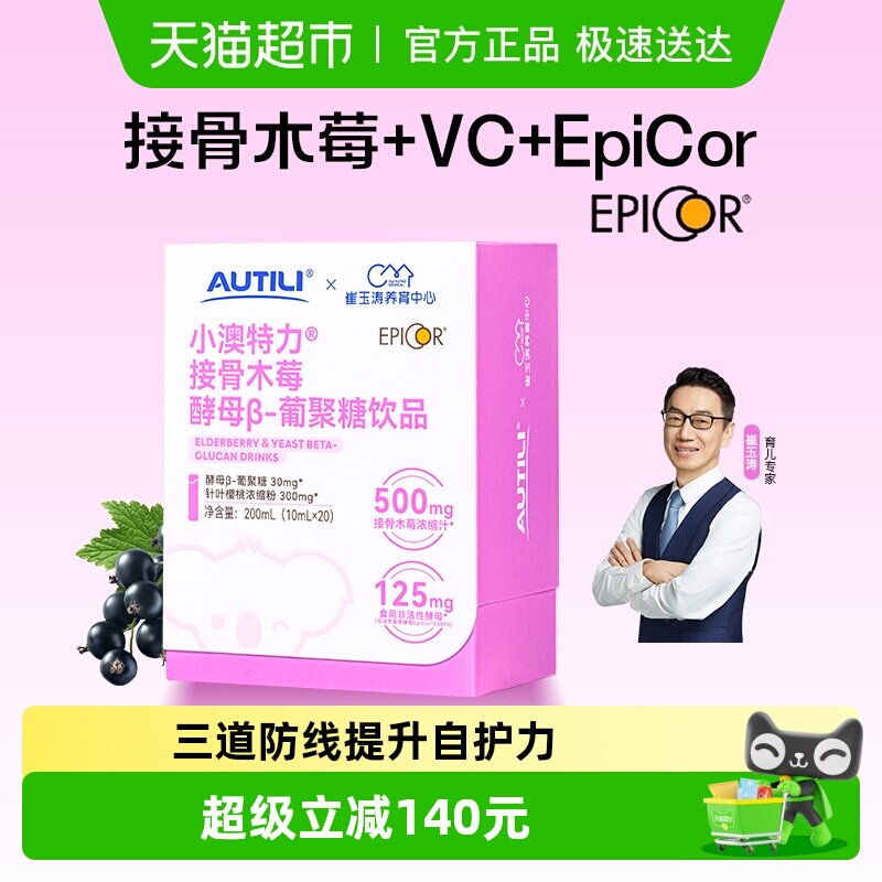 崔玉涛团队亲研澳特力接骨木莓epicor饮液爱必可维生素C儿童营养