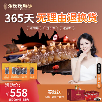 旗舰店张奶奶 大连冷冻即食海参礼盒非干货天然辽刺参高品质海鲜无污染 即食海参 1500g 45-55头3斤礼盒装 体壁厚实 Q软弹牙