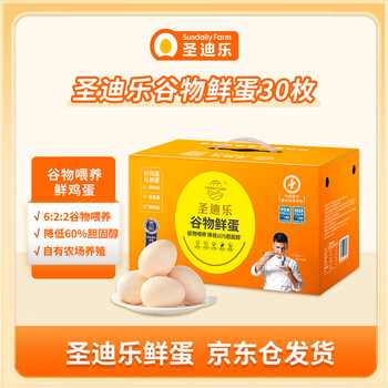 自营圣迪乐村 谷物鲜鸡蛋30枚礼盒装 净重3斤