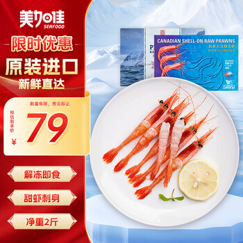 自营美加佳北极甜虾 净重2斤 原装进口 90-120只 生甜虾