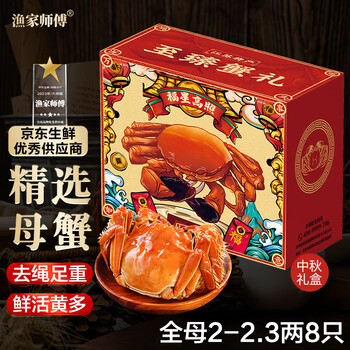 自营【活蟹】漁家师傅大闸蟹全母2-2.3两8只去绳足重鲜活螃蟹现货生鲜水产海鲜礼盒源头直发