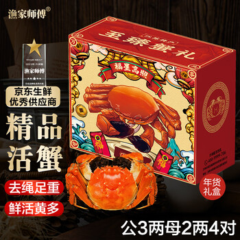 自营【活蟹】漁家师傅大闸蟹公3-3.3两母2-2.3两4对8只去绳足重鲜活螃蟹现货生鲜年货礼盒
