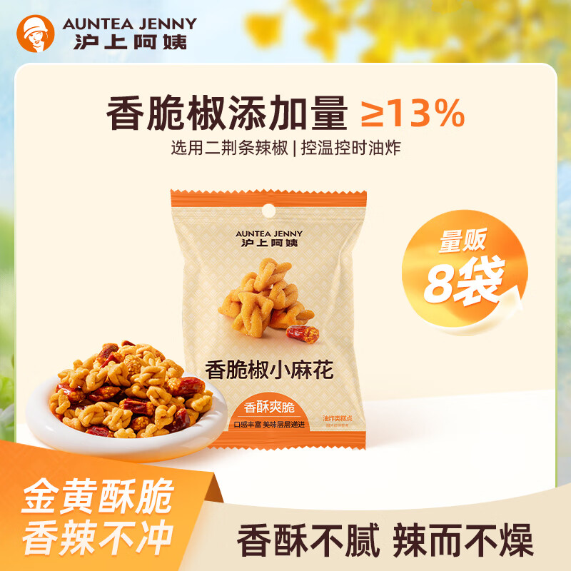 自营沪上阿姨香脆椒小麻花35g*8袋独立便携包装办公室休闲小零食香脆