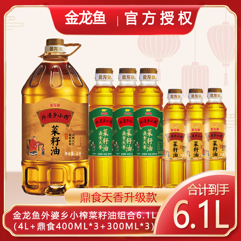旗舰店外婆乡小榨菜籽油组合装6.1L(4L+400ml*3+300ml*3)非转压榨