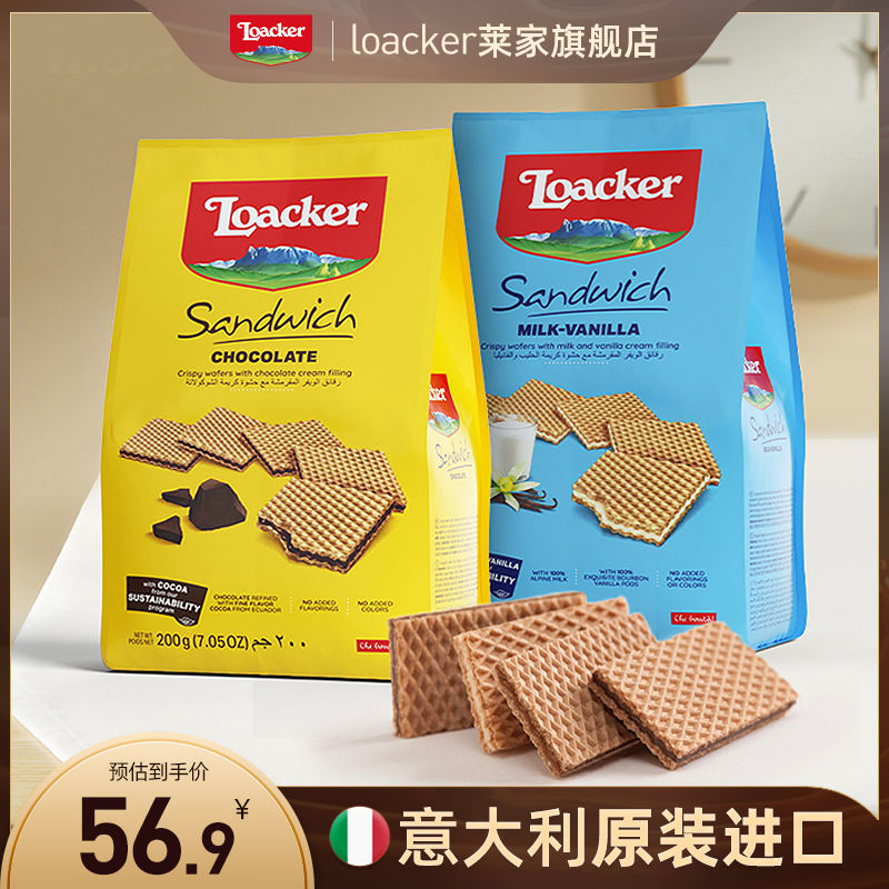 旗舰店loacker莱家意大利进口薄片威化饼干200g*2袋网红休闲办公室零食