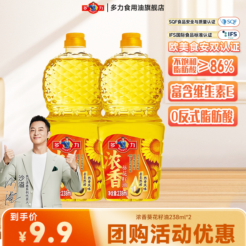 旗舰店多力浓香葵花籽油压榨炒菜优质家用食用油238ml*2