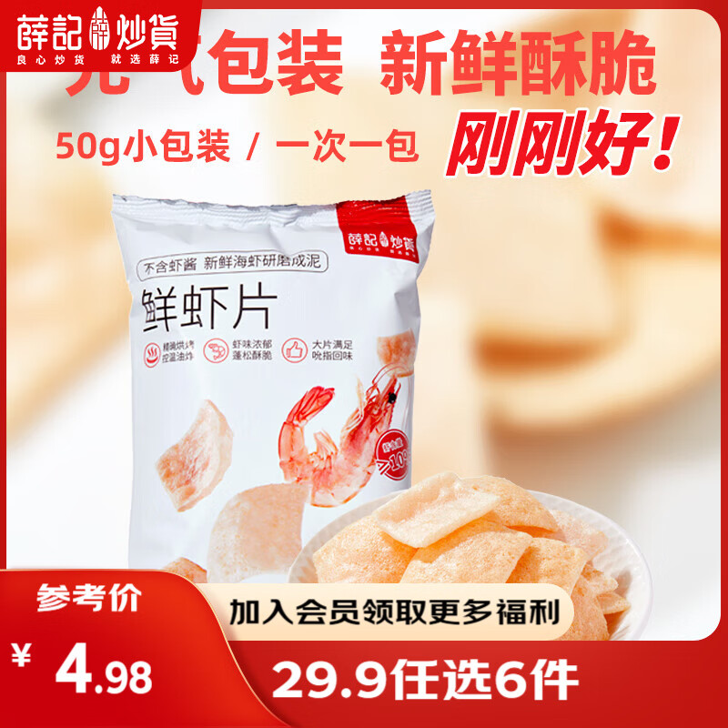 旗舰店薛记炒货 【29.9任选6件】夏威夷果巴旦木山楂甘薯棒果干坚果休闲零食 鲜虾片50g