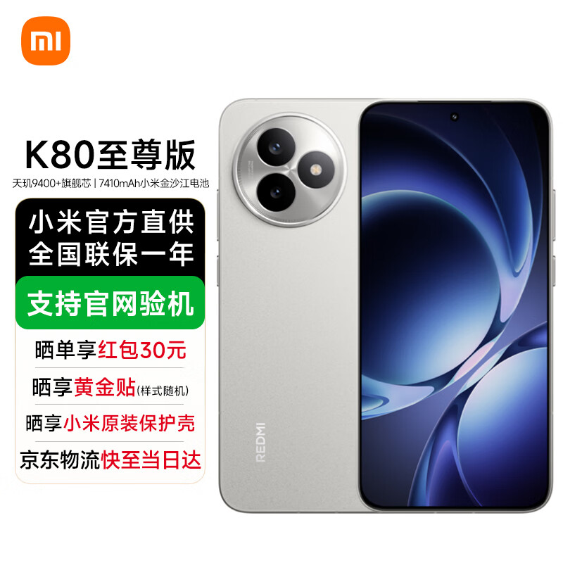 旗舰店小米Redmi 红米K80至尊版【国家补贴15%】K80 Ultra 新品5G手机 月岩白 12GB+256GB 官方标配