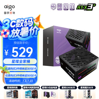 自营爱国者(aigo)星璨EV850W白金牌 黑 ATX3机箱电源 PPLP/80PLUS认证/一键超频/稳压5070Ti/9070XT