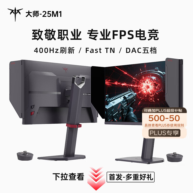 自营KTC 24.1英寸 400Hz电竞 FastTN显示器 0.5ms响应 DAC技术 100档OD 职业FPS游戏 电脑显示屏 大师25M1