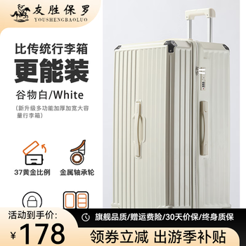 旗舰店友胜保罗大容量行李箱多功能高颜值拉杆箱男密码箱大号旅行皮箱登机箱可坐 谷物白【充电+杯架+手机支架】 20英寸 【五五分登机箱】
