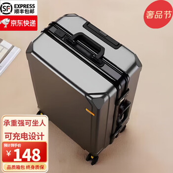 旗舰店旅刻行李箱可登机加厚铝框超轻旅行箱大容量女男士密码皮箱学生拉杆箱 钛金灰【加厚铝框可坐+充电口】 28英寸 【巨大,可装棉被】